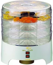Suszarka do owoców i warzyw Luxpol TS-9688-3 – to już ostatnie urządzenie do suszenia grzybów, warzyw, owoców, ziół, kwiatów i mięsa, opisany w naszym rankingu najlepszych suszarek do żywności. Model ten ma moc 250W, ciepłe powietrze jest bardzo równomiernie rozprowadzane po wnętrzu urządzenia a całość działa w taki sposób, by zachować niemal sto procent składników odżywczych w warzywach i owocach. W skład zestawu wchodzi aż 5 sit o wysokości 3.3cm a każde sito ma średnicę 26,3cm i pomieści aż kilogram produktów. Samodzielnie możemy sterować temperaturą ciepła wydzielanego przez urządzenie (35-70 stopni Celsjusza). Model ten jest również wyposażony w automatyczny wyłącznik i ogranicznik temperatury.