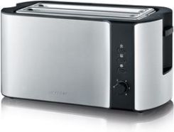 Toster Severin AT2509 to urządzenie dla wymagających użytkowników w naprawdę dobrej cenie (około 180zł). Jest on bardzo pojemny, dlatego najczęściej decydują się na niego użytkownicy, którzy mają sporą rodzinę. Za jednym razem w tosterze przygotujemy 4 tosty. Toster wykonany jest ze stali nierdzewnej co sprawia, że będzie nam on służył długo i zawsze wyglądał dobrze. Ten model jest wyposażony również w elektryczny regulator pieczenia, dzięki czemu tosty zawsze będą wychodzić idealnie! Nigdy już nie spalimy swojego posiłku! Dodatkowym atutem urządzenia jest specjalna taca na okruchy, która pomaga nam zachować miejsce przygotowywania posiłku w czystości. Warto także wspomnieć o specjalnym schowku na przewód – dużo łatwiej będzie więc przechowywać urządzenie – bez obawy o uszkodzenie kabla. Moc tostera wynosi aż 1400W.