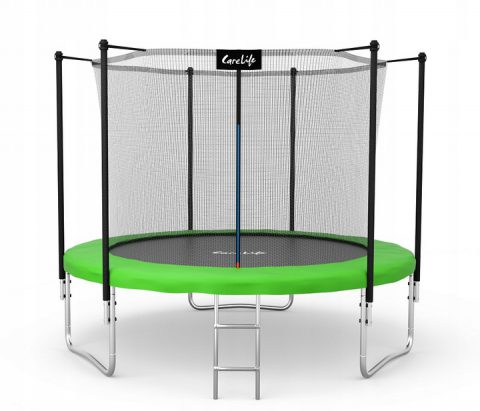 Trampolina ta to ciekawa propozycja. Zestaw który otrzymujemy zapewnia szybki montaż. Metalowe słupki są pokryte pianką zabezpieczająca. Posiada wodoodporną, elastyczną matę, dodatkowo wzmocnioną dzięki ośmiokrotnemu zszyciu, co zapewnia długi okres intensywnej eksploatacji.